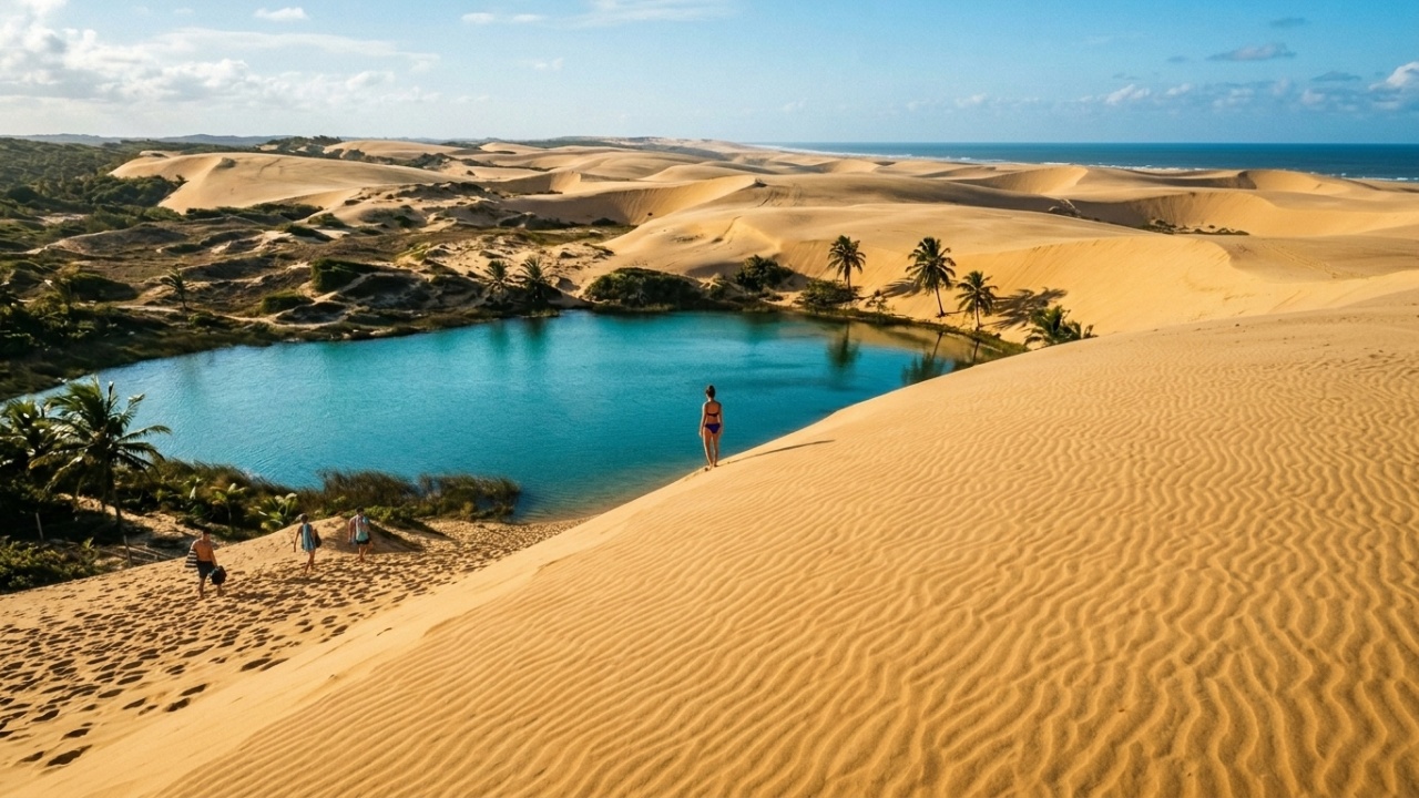 Dunas que mudam de lugar toda semana e quase foram palco de uma invasão militar: o vilarejo que virou o “Saara do Nordeste” com uma lagoa azul-turquesa e mar morno