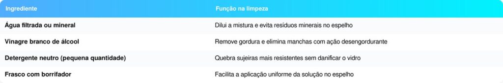 O principal diferencial da mistura simples para limpar espelho sem manchas está na composição leve e na rápida evaporação. Ao contrário de produtos mais densos, ela não forma película sobre o vidro.