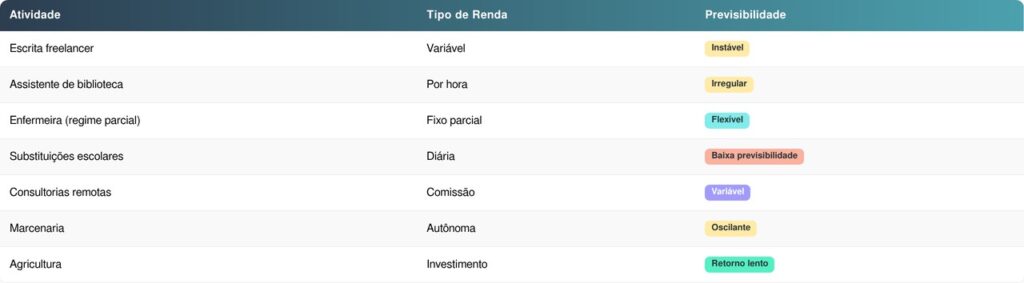 A realidade descrita inclui uma combinação de funções que, isoladamente, seriam insuficientes, mas juntas formam uma tentativa de equilíbrio financeiro.