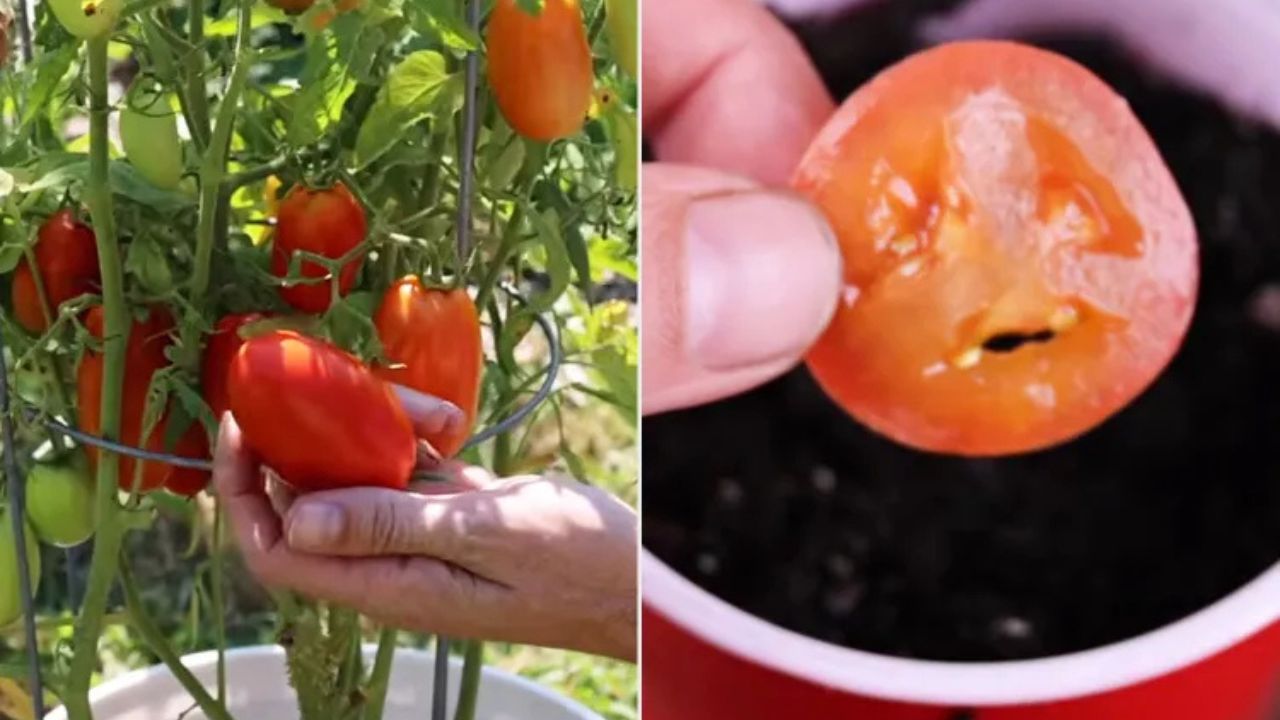 No primeiro método, ele separou sementes do tomate e as plantou em um copo com solo. Já no segundo, inseriu diretamente uma fatia inteira do tomate no substrato. Ambas as técnicas resultaram em germinação, o que reforça a viabilidade das sementes mesmo após o processamento alimentar.
