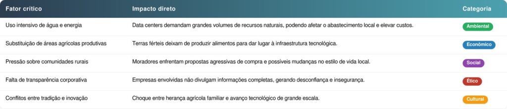 O episódio reflete uma tendência global: a expansão de data centers impulsionada pela demanda por tecnologia, inteligência artificial e armazenamento em nuvem.
