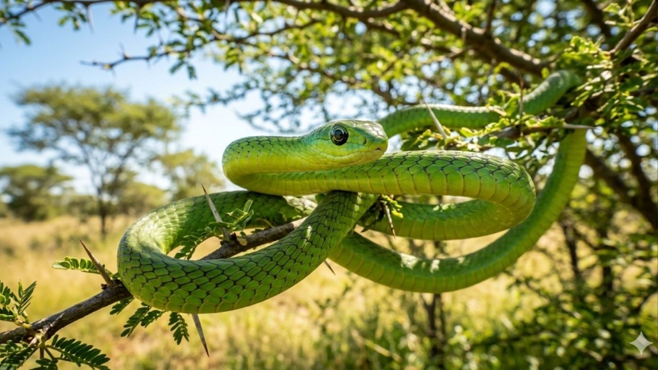 Ele estava enganado. A boomslang (Dispholidus typus) é uma serpente arborícola da África Subsaariana que pertence à família Colubridae. Diferente de víboras e najas, suas presas ficam na parte de trás da boca, o que por décadas levou cientistas a subestimarem o perigo. Mas seu veneno hemotóxico é devastador: provoca uma condição chamada coagulação intravascular disseminada, na qual pequenos coágulos se formam por todo o corpo até que o sangue perde a capacidade de coagular, causando hemorragias generalizadas.