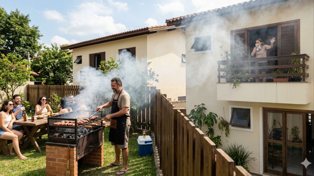 Na prática, o direito de vizinhança não proíbe ninguém de fazer churrasco no próprio quintal. O que a legislação avalia é se o incômodo causado pela fumaça vai além do que seria tolerável na convivência entre vizinhos. Quando a emissão de fumaça é constante, intensa ou direcionada para a casa ao lado, o vizinho prejudicado tem respaldo legal para buscar uma solução, inclusive na Justiça.