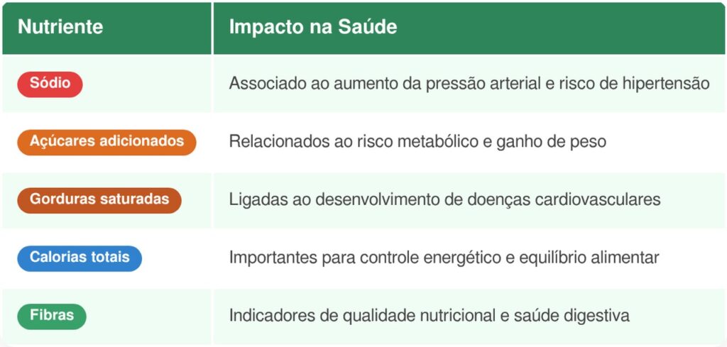 Embora toda a tabela nutricional seja relevante, alguns nutrientes têm impacto direto na saúde e devem ser observados com mais rigor.