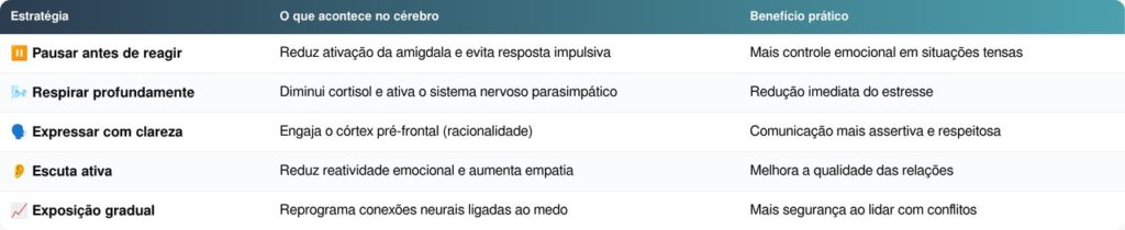 Embora a resposta inicial seja automática, existem formas de reduzir esse impacto. Estratégias simples podem ajudar a regular o sistema emocional e melhorar a comunicação.
