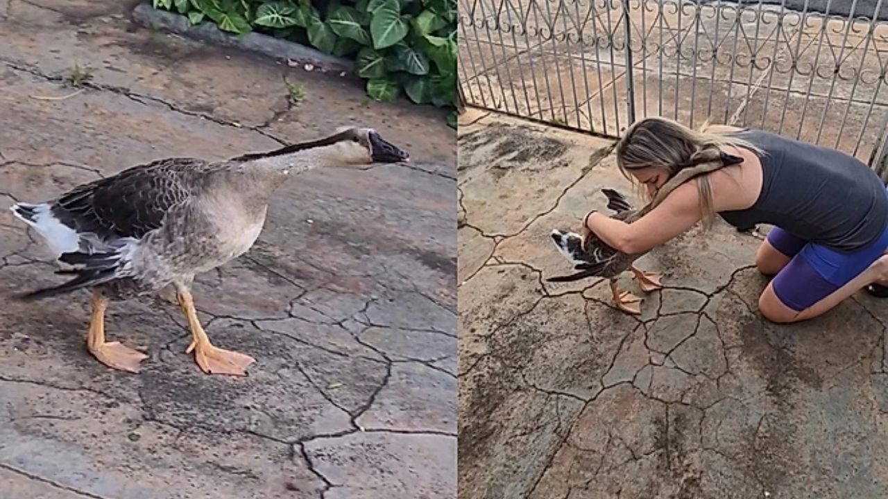 O vídeo publicado no perfil da tutora na plataforma TikTok mostra um momento simples, mas altamente simbólico. Ao ouvir o chamado no portão, o ganso corre em direção à dona, abre as asas e se encaixa em um abraço.