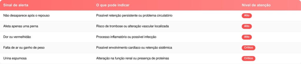 Embora o inchaço no fim do dia seja comum, existem situações que exigem atenção médica.