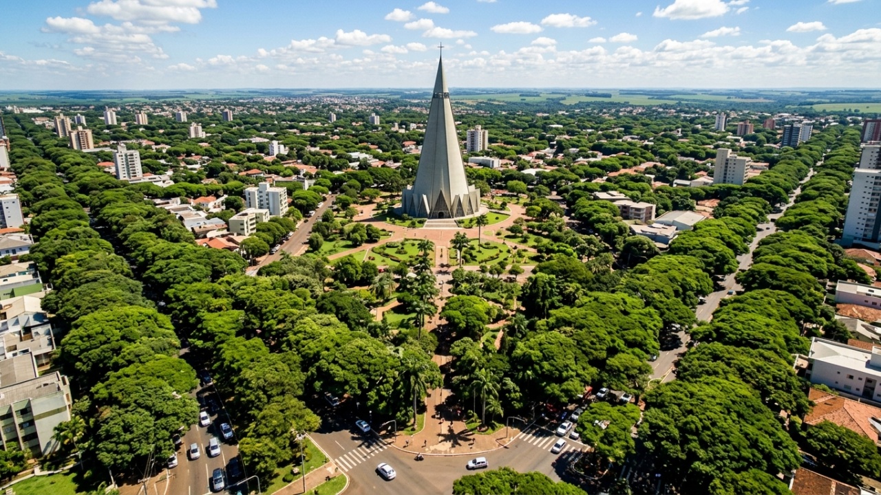 Maringá é uma das raras cidades brasileiras onde o planejamento urbano sobreviveu ao tempo. Os túneis verdes, o saneamento de excelência, a catedral que rasga o horizonte a 124 metros e os rankings que se acumulam contam a mesma história, a de uma cidade-jardim que virou realidade.