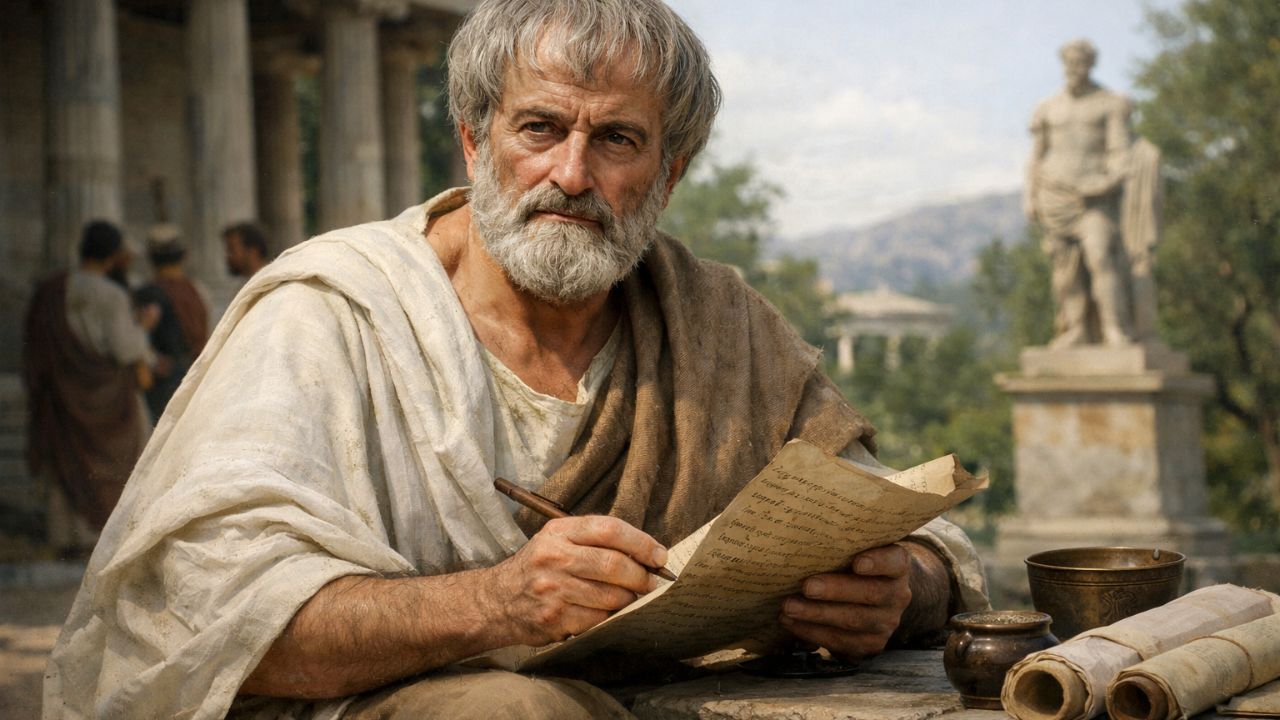 Aristóteles foi um dos principais filósofos da Grécia Antiga, discípulo de Platão e tutor de Alexandre, o Grande. Fundador do Liceu, produziu obras fundamentais sobre ética, política, lógica e metafísica, influenciando profundamente o pensamento ocidental.