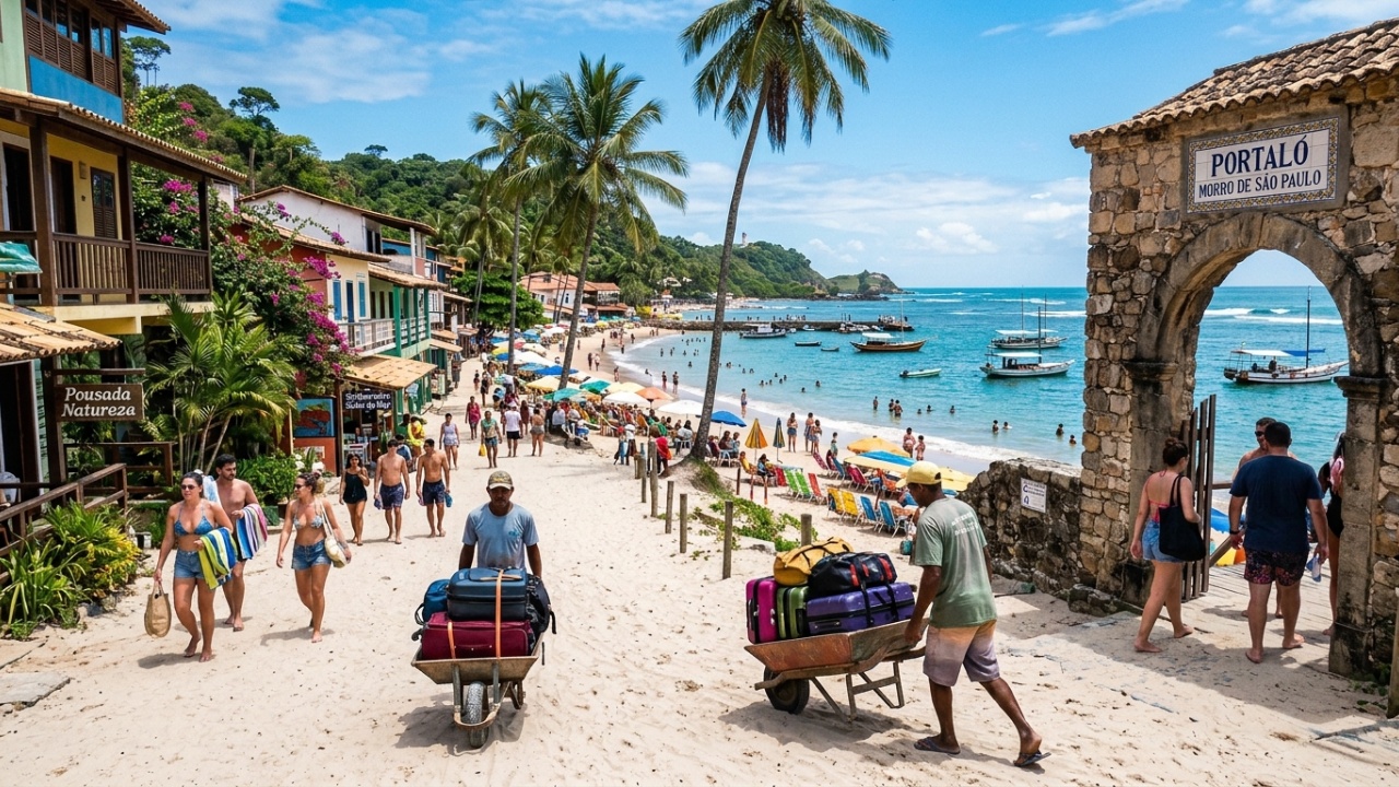 Morro de São Paulo é raro por combinar uma fortaleza de quase quatrocentos anos, praias premiadas internacionalmente e uma rotina onde a bagagem chega em carrinho de mão. A ilha trocou o asfalto por areia, os semáforos por marés, e mantém intacto o ritmo lento que poucos destinos do Brasil ainda conseguem oferecer.