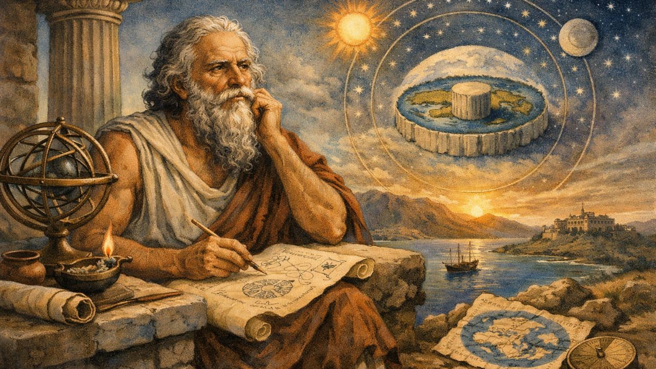 Anaximandro foi um filósofo pré-socrático grego, ativo no século VI a.C., discípulo de Tales de Mileto e um dos primeiros pensadores a propor uma explicação racional para a origem do cosmos. Sua contribuição marca um ponto decisivo na passagem do pensamento mítico para o pensamento filosófico.
