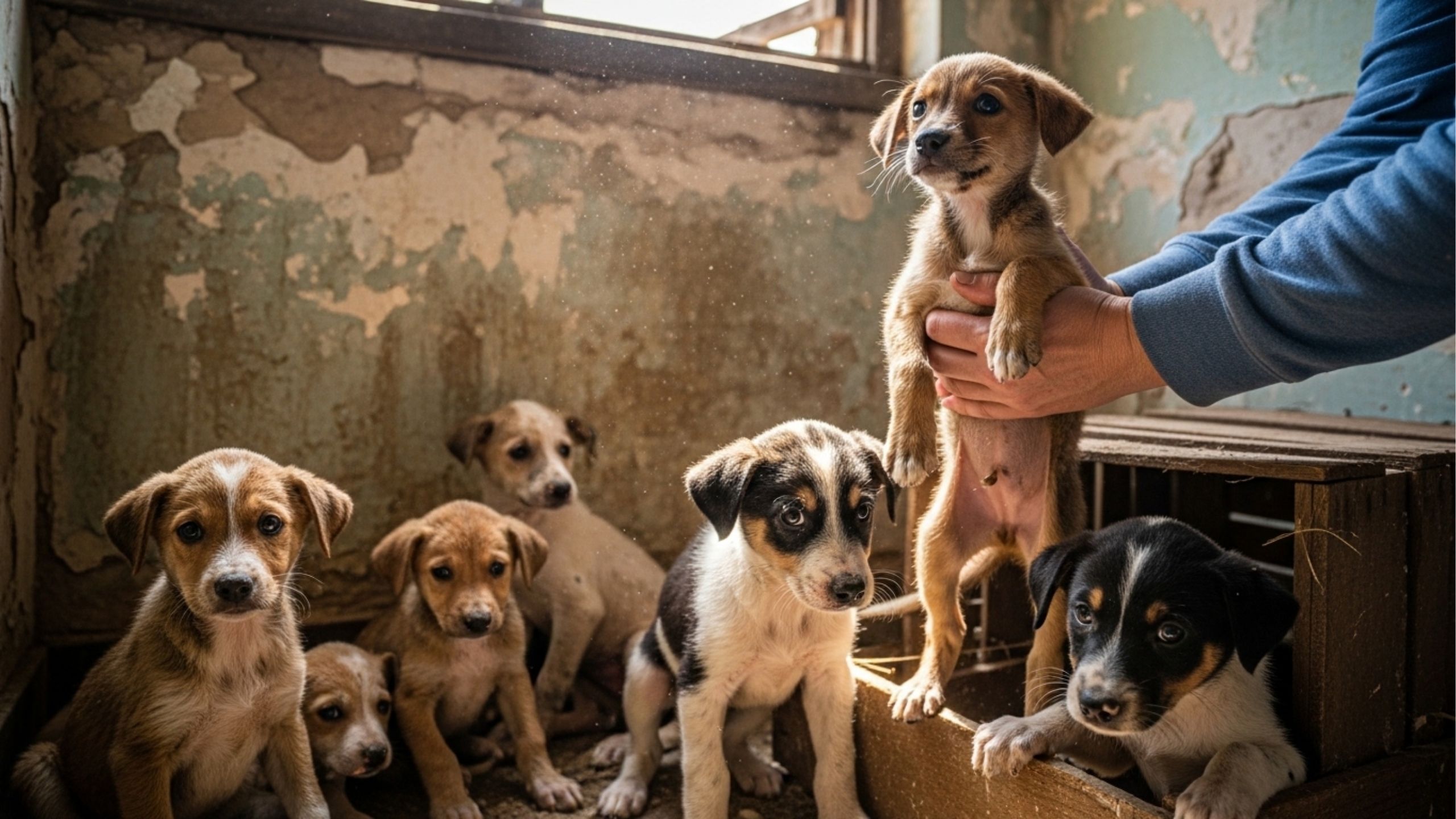 Como filhotes de cachorro foram encontrados em casa abandonada?