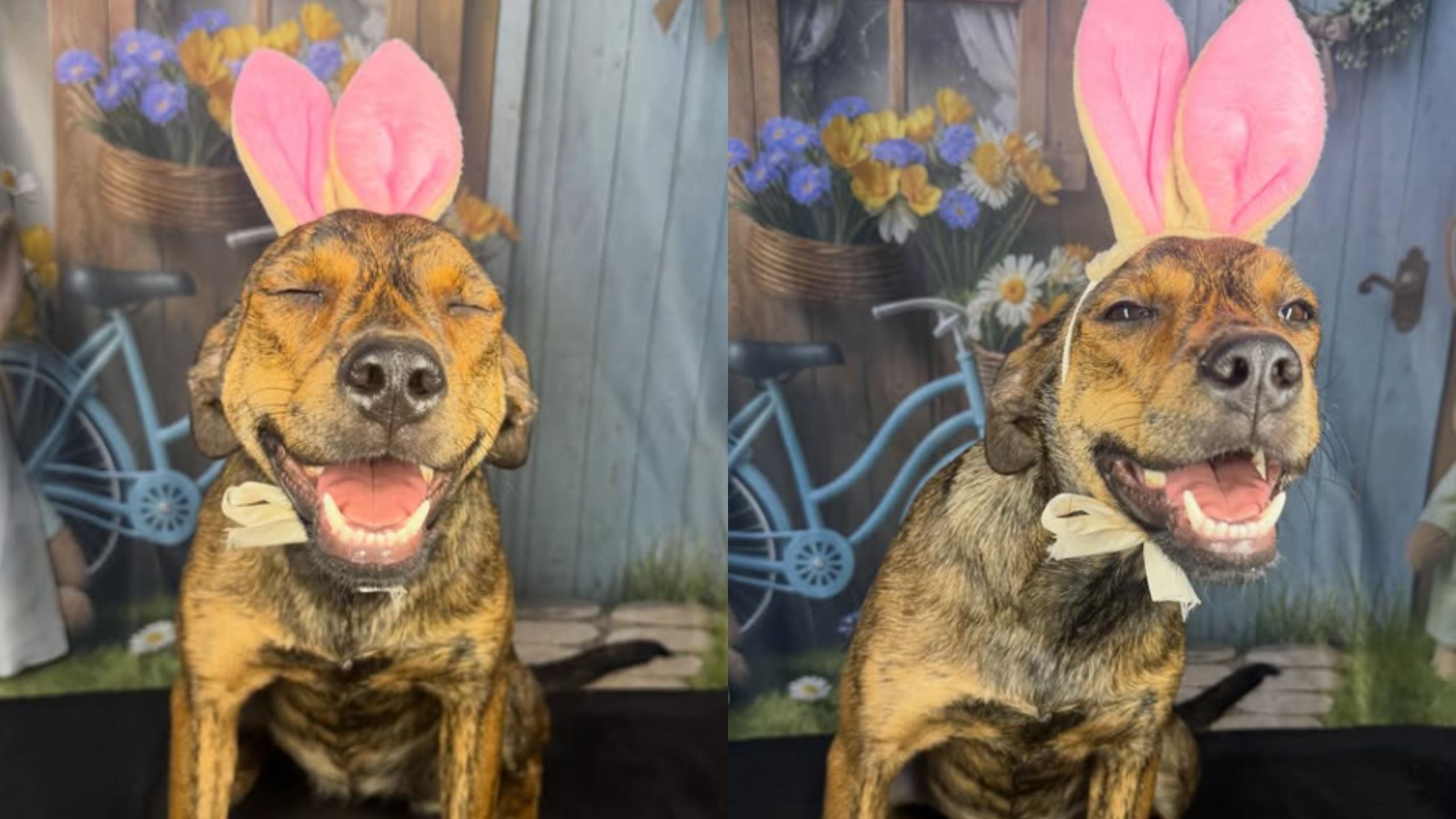 A cadela sorri também recebeu tratamento contra parasitas, como carrapatos, e avaliação clínica completa. O estado de saúde de Nádia foi estabilizado graças ao trabalho de proteção e atenção veterinária.