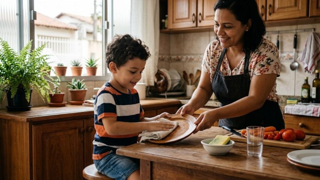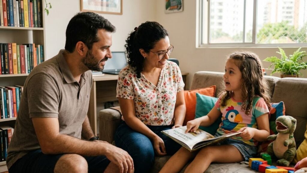Dica prática: Em vez de fornecer a resposta final imediatamente, tente dizer “como você acha que isso funciona?”. Esse microbloco de interação pedagógica desloca a criança do papel de receptora passiva para o de protagonista do conhecimento. Ao fazer isso, você está fornecendo os tijolos para uma inteligência analítica que será útil em todas as etapas da vida dela.