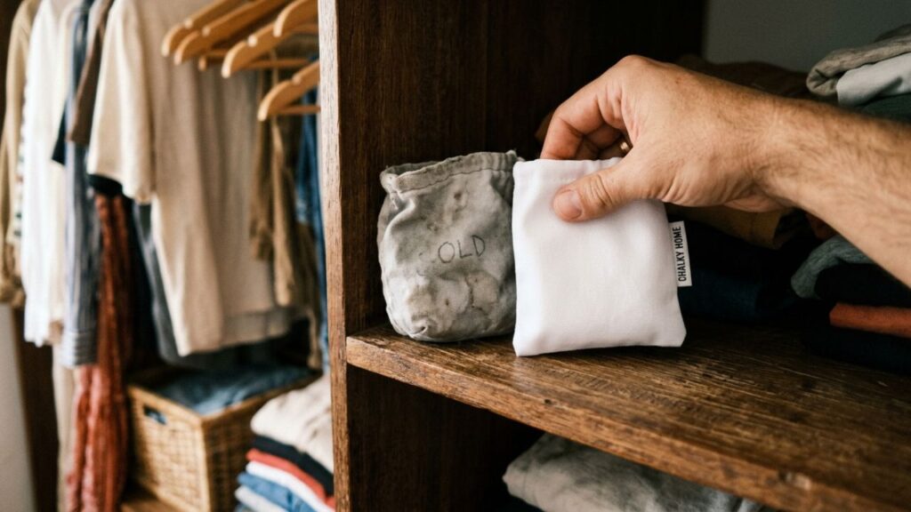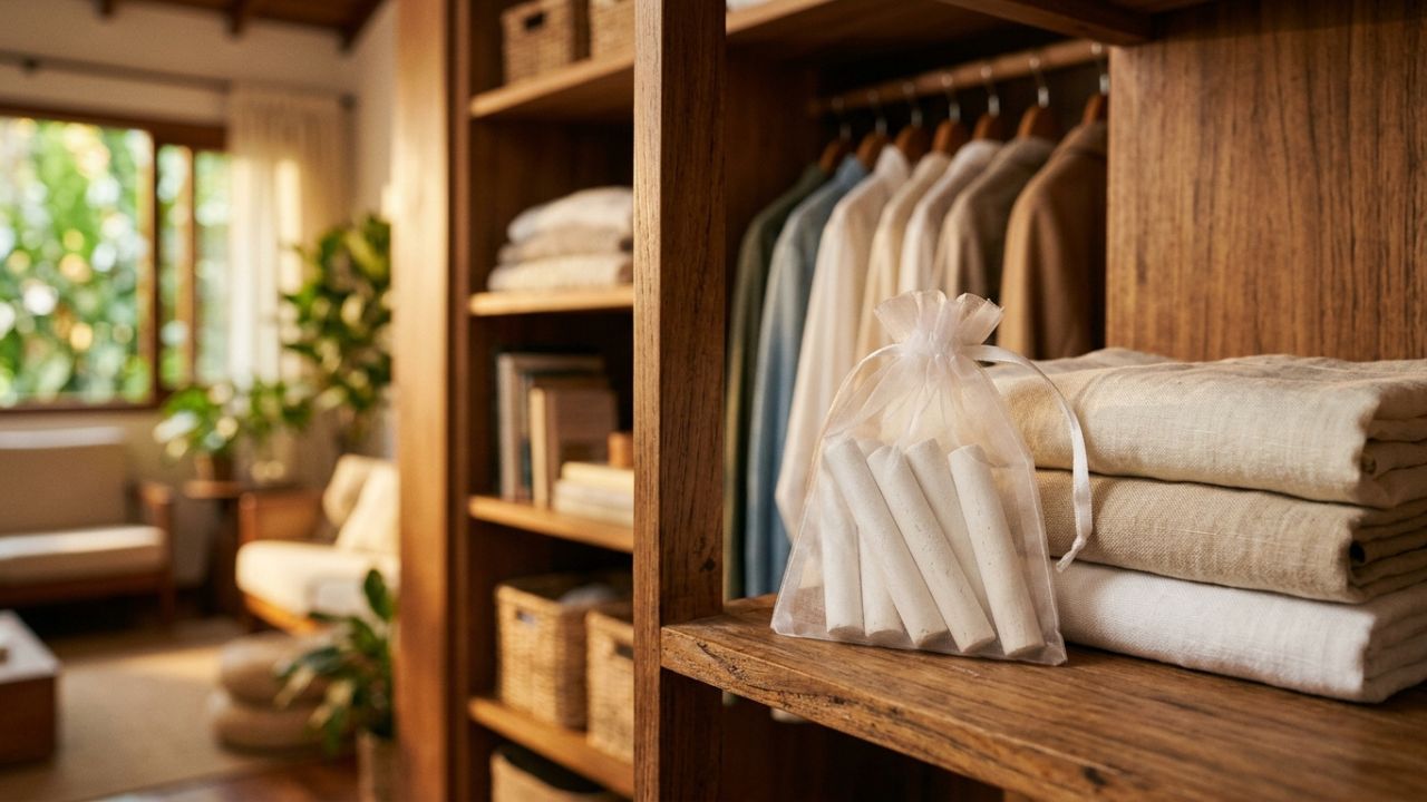 O uso de giz de lousa em armários é uma técnica doméstica simples para combater o excesso de umidade. Essa prática ajuda a preservar as roupas e evita o surgimento de odores indesejados no ambiente interno.