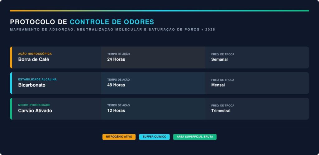 A aplicação em lixeiras de cozinha também é recomendada para reduzir o impacto visual e sensorial dos resíduos orgânicos. Essa prática é comum em diversos lares do Brasil que buscam alternativas econômicas e ecológicas para a manutenção da casa.