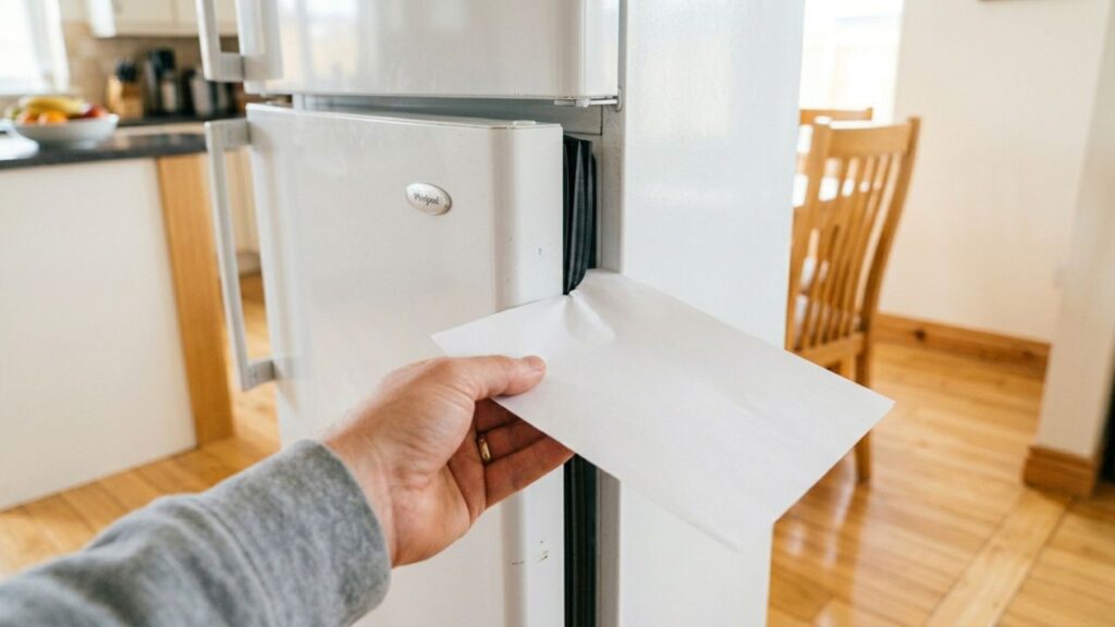 Um teste simples consiste em colocar uma folha de papel entre a porta e o gabinete para verificar a pressão. Se a folha cair sem resistência, a peça está desgastada e deve ser trocada seguindo as normas técnicas da ABNT.