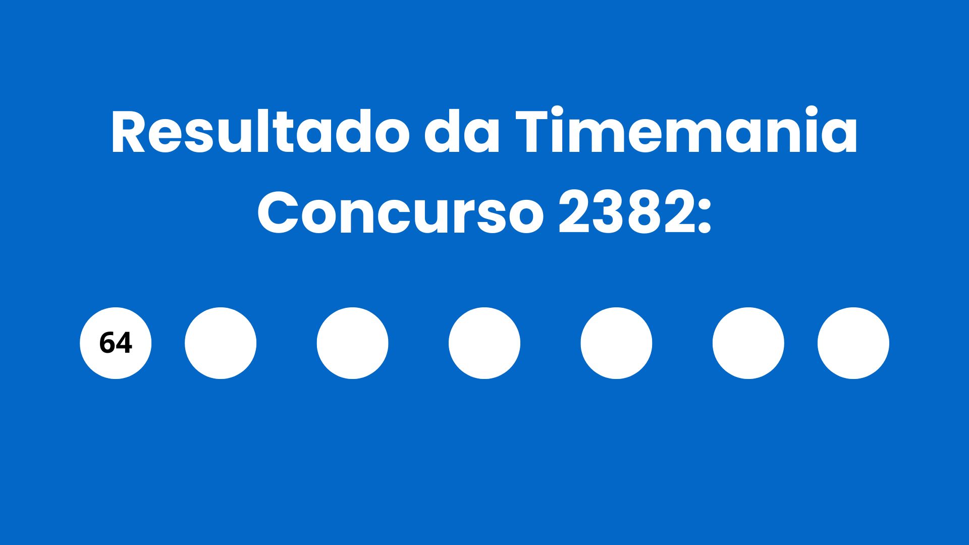 O sorteio da Timemania 2382 foi realizado neste sábado (18/04). O prêmio principal estava estimado em R$ 20 milhões. Confira os números sorteados e os ganhadores.
