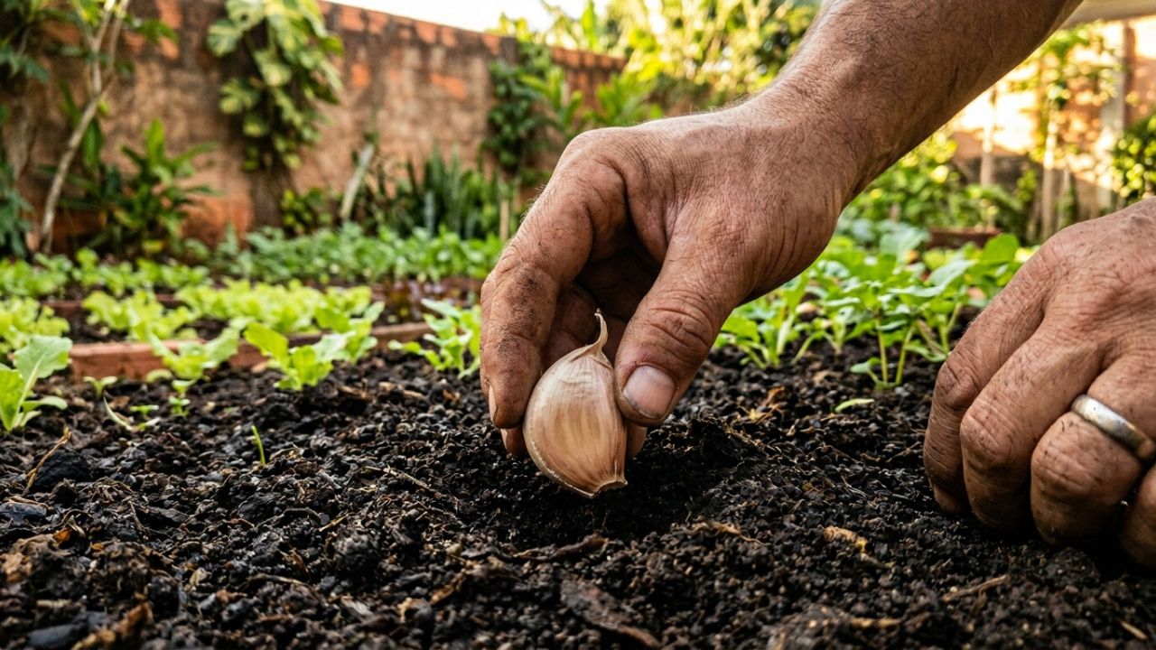 Plantar alho em hortas domésticas no Brasil exige atenção aos detalhes técnicos que garantem a germinação rápida. O uso de cinzas de madeira e a posição correta do dente são segredos fundamentais para o sucesso.