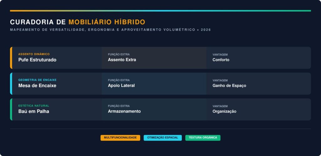 Como as peças multifuncionais transformam a dinâmica da sala?