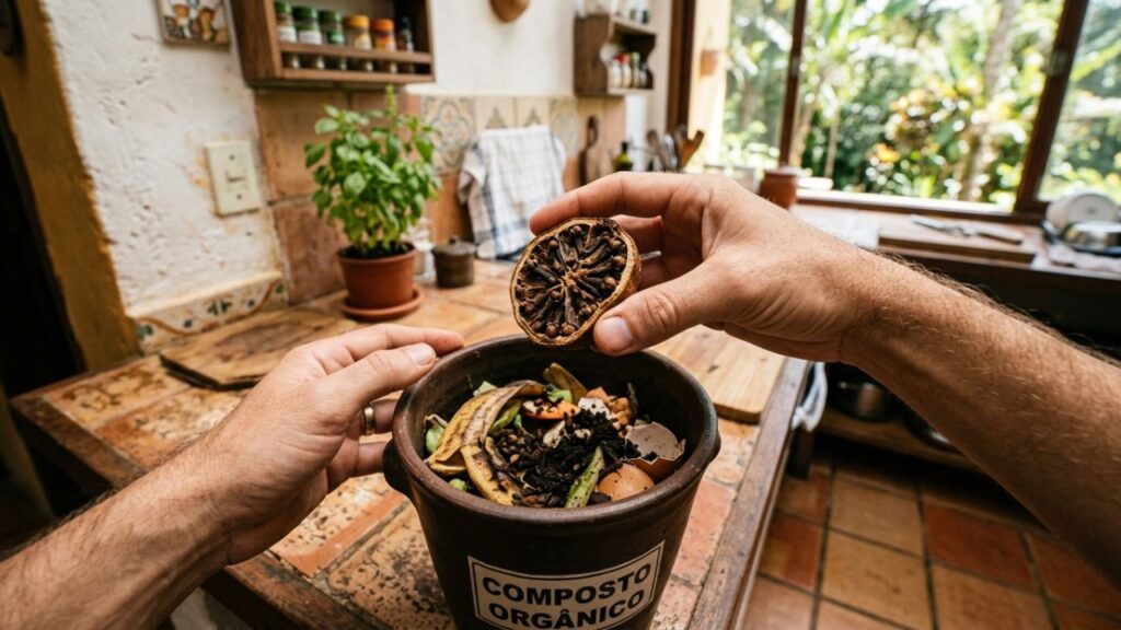 Os resíduos orgânicos podem ser encaminhados para a compostagem doméstica, servindo como adubo após o processamento biológico. Esse ciclo sustentável reforça o caráter ecológico de uma prática que dispensa embalagens plásticas e aerossóis.