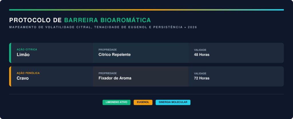 O segredo dessa técnica reside na liberação de óleos essenciais que possuem propriedades repelentes naturais para diversas espécies de voadores. O limoneno presente na fruta exala um odor que desorienta os receptores sensoriais dos mosquitos.