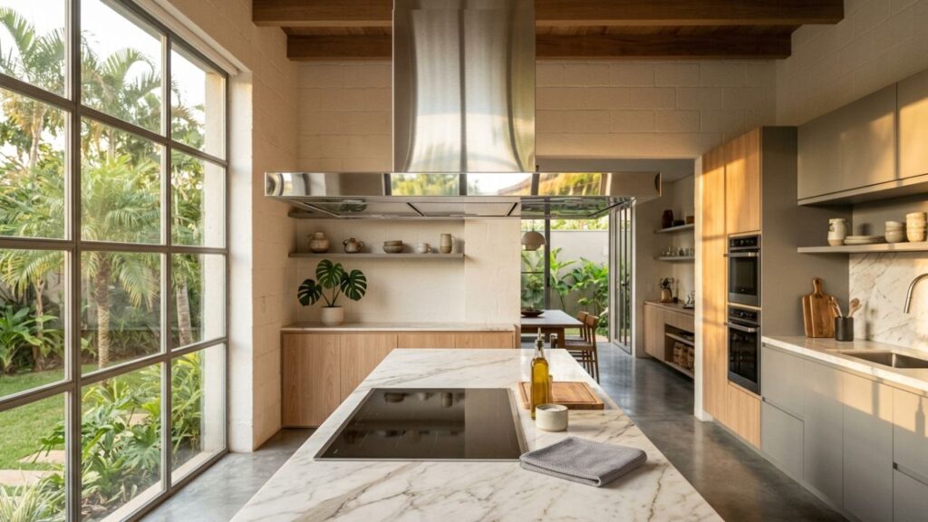 Ligar a exaustão alguns minutos antes de iniciar o preparo dos alimentos ajuda a criar um fluxo de ar eficiente. Essa prática simples impede que o vapor se condense sobre as superfícies frias da cozinha e reduza a vida útil do motor.