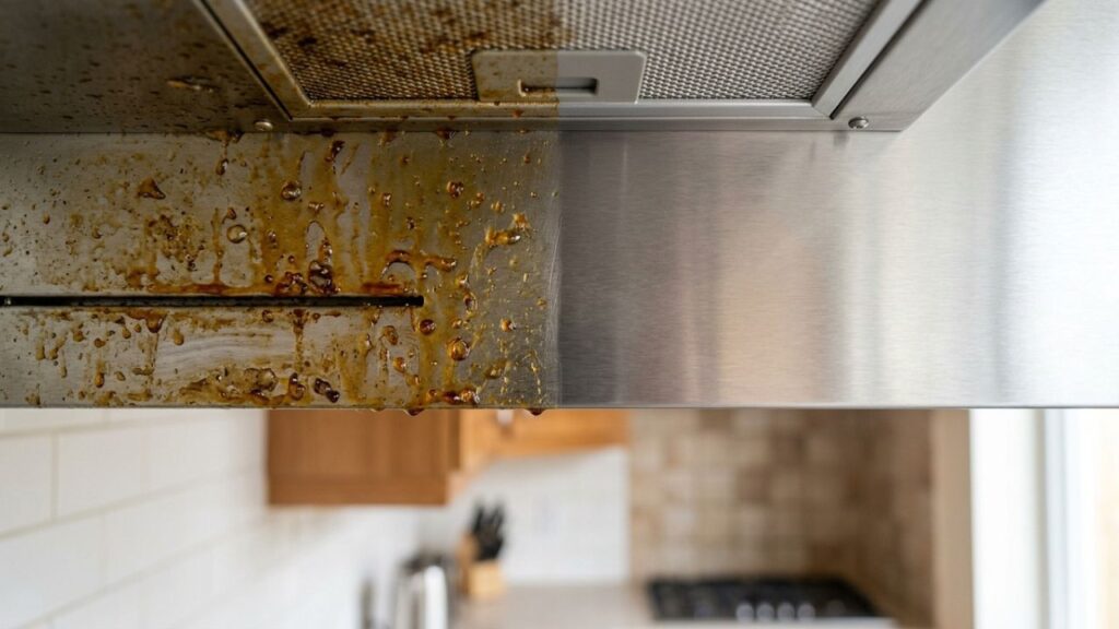 Além do problema técnico, a sujeira acumulada pode causar odores desagradáveis que se espalham pela residência de forma persistente. A manutenção regular impede que a gordura oxide o metal e cause manchas profundas que são difíceis de retirar.