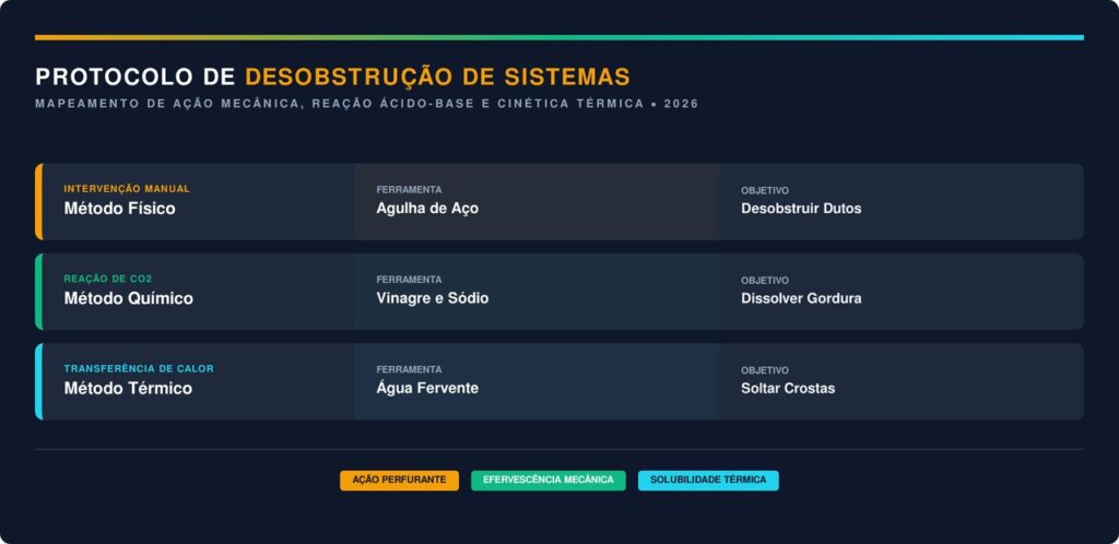 A aplicação de soluções ácidas ajuda a quebrar as moléculas de lipídios que grudam nas peças de metal após o preparo de frituras pesadas. O repouso prolongado em misturas desengordurantes facilita a remoção manual sem a necessidade de exercer pressão excessiva sobre o alumínio.