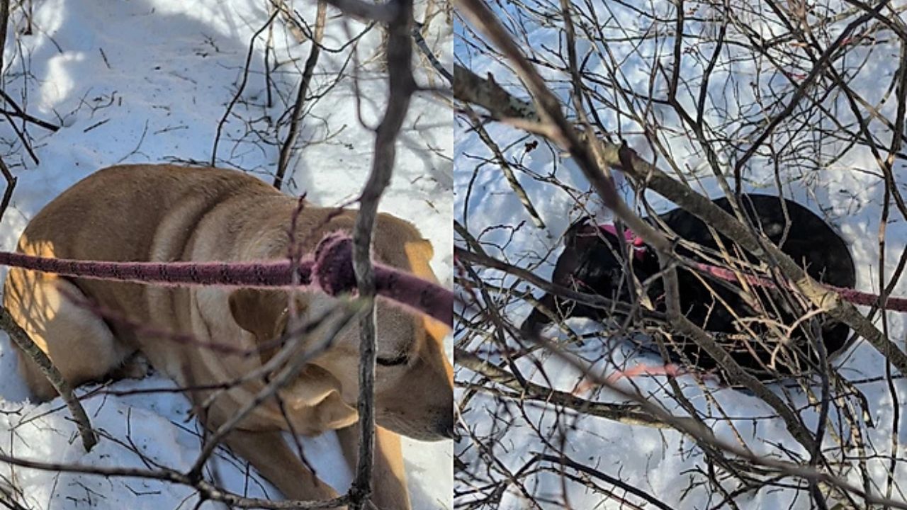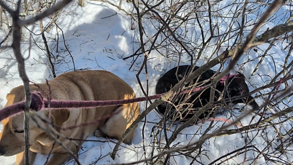 Mesmo com frio extremo e condições adversas, a cadela Bow permaneceu ao lado de Shy por mais de vinte e três horas, em um cenário de risco, até que ambas fossem resgatadas com vida.