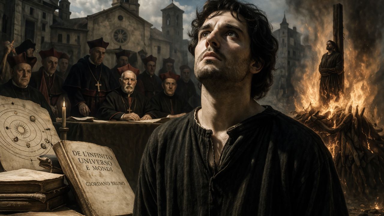 Giordano Bruno foi executado em 1600, acusado de heresia por suas ideias filosóficas e cosmológicas.