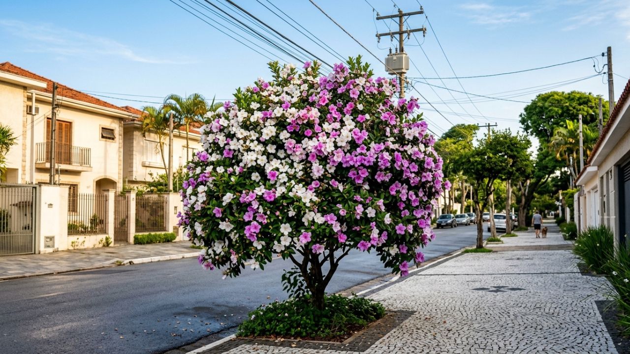 O manacá-da-serra anão destaca-se no paisagismo urbano por seu porte controlado e floração exuberante em pequenos espaços residenciais. Essa espécie nativa da Mata Atlântica embeleza calçadas sem comprometer a integridade das tubulações.