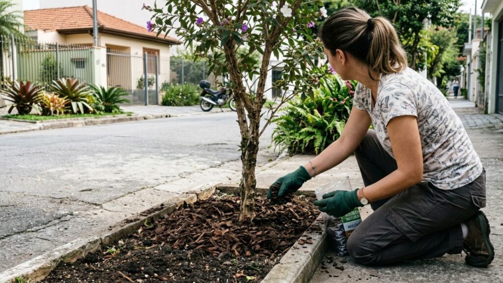 A manutenção simplificada exige poucas podas de condução, tornando-a uma escolha prática para moradores de áreas adensadas. O crescimento moderado garante que a árvore mantenha sua forma compacta por muitos anos no Brasil.