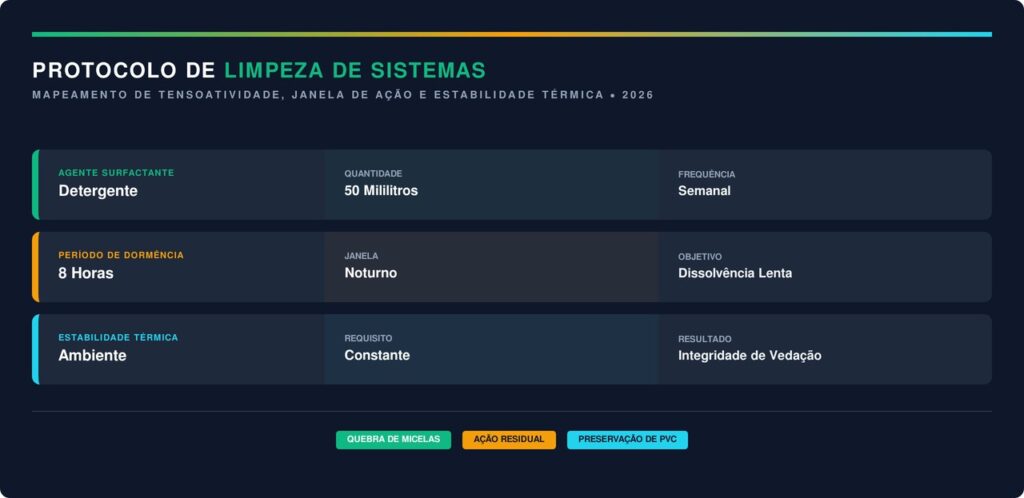 A utilização de detergente de louça no vaso sanitário durante o período noturno é uma estratégia prática para facilitar a remoção de gorduras e manchas difíceis. Esse método aproveita o tempo de repouso do aparelho para agir profundamente nas superfícies cerâmicas sem esforço manual.