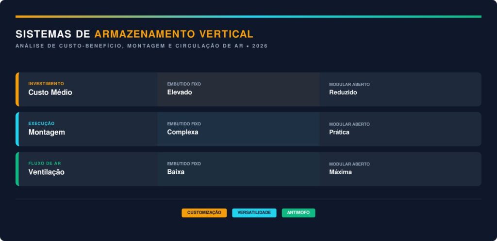 Propriedades que oferecem soluções de armazenamento flexíveis costumam atrair compradores interessados em personalização e praticidade imediata. A facilidade de remover ou ampliar o sistema sem quebrar paredes é um diferencial competitivo no mercado imobiliário.