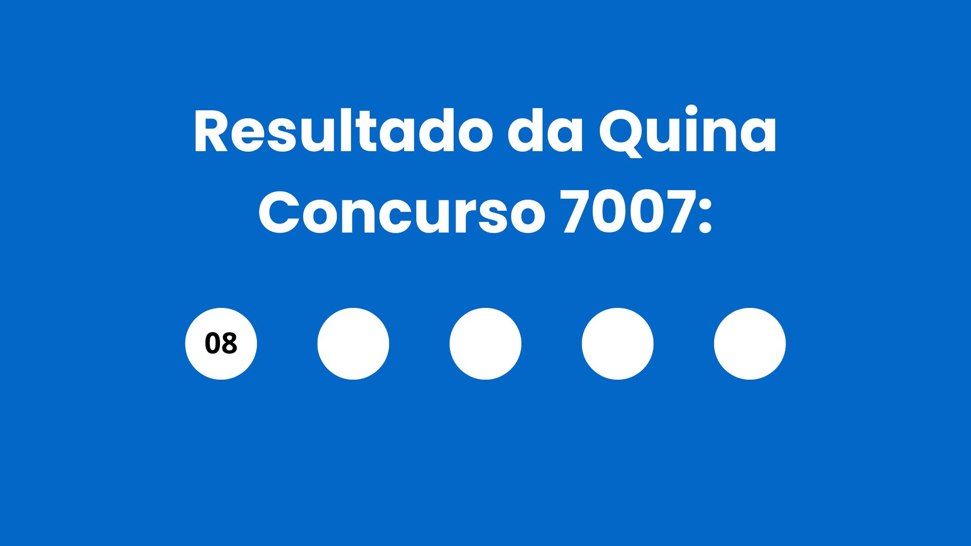 O sorteio do concurso 7007 da Quina aconteceu na noite desta quarta-feira, 22 de abril de 2026, no Espaço da Sorte, em São Paulo (SP), sob responsabilidade oficial da Caixa Econômica Federal. O prêmio principal estava estimado em R$ 32 milhôes