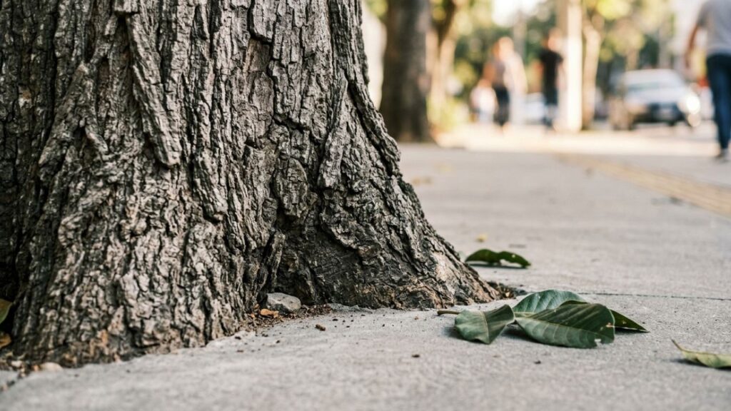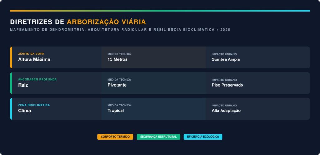 Diferente de espécies com raízes superficiais, esta árvore projeta seu sistema de sustentação para as camadas mais baixas do solo. Esse comportamento biológico evita o atrito direto com a base de concreto ou camadas de asfalto.