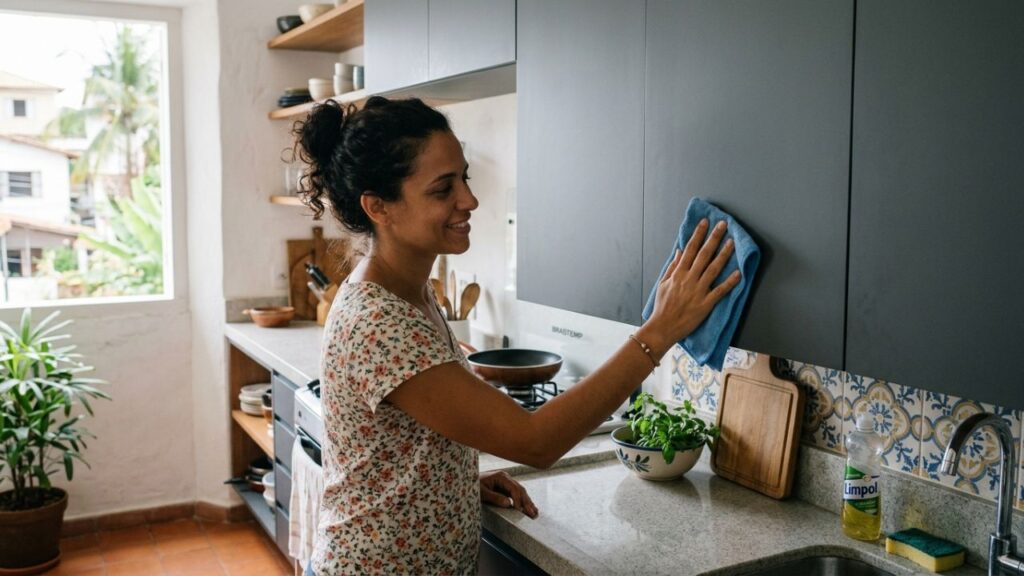 Como a limpeza das superfícies lisas otimiza o tempo na cozinha?