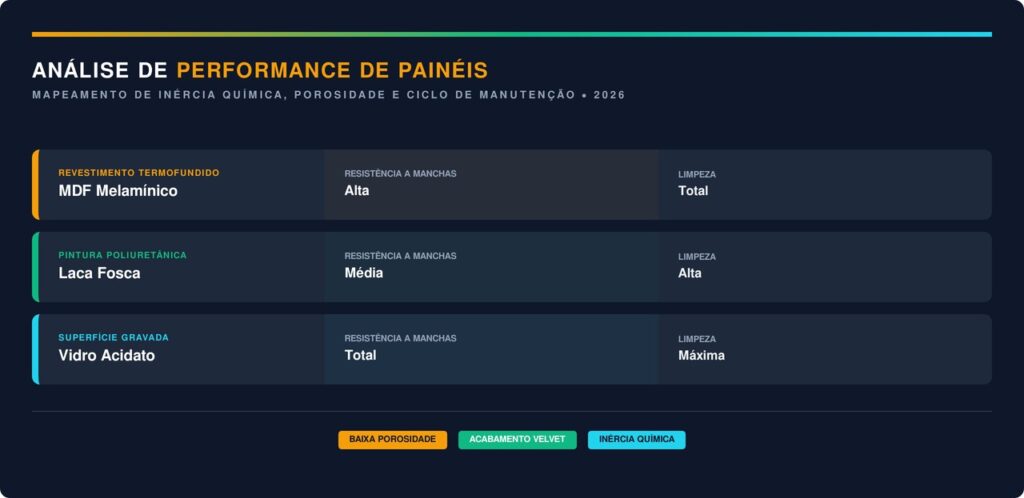Revestimentos que não marcam facilmente com o toque das mãos são os mais procurados para evitar a aparência de sujeira constante. O uso de texturas foscas e tecnologias que repelem a oleosidade dos dedos garante a durabilidade estética do projeto em longo prazo.