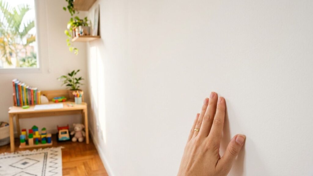 Superfícies com acabamento fosco tendem a segurar mais os resíduos do que as paredes com brilho ou acetinadas. O atrito constante durante a brincadeira infantil fixa a tinta de forma profunda na estrutura da parede da residência.