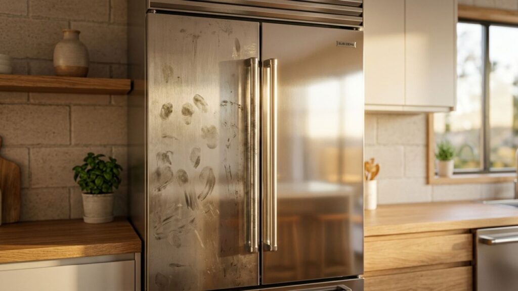 Esse acúmulo de marcas ocorre com maior frequência em áreas de uso intenso, como as portas de refrigeradores e painéis de fornos. A falta de um selante protetor permite que a sujeira se fixe profundamente nos microporos da superfície metálica.
