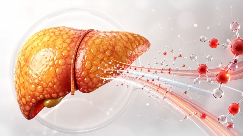 É como se o fígado fosse um estoque que começa a ficar cheio demais. Quando não consegue dar conta, o organismo passa a sofrer impactos no metabolismo, incluindo resistência à insulina e alterações nos níveis de energia.