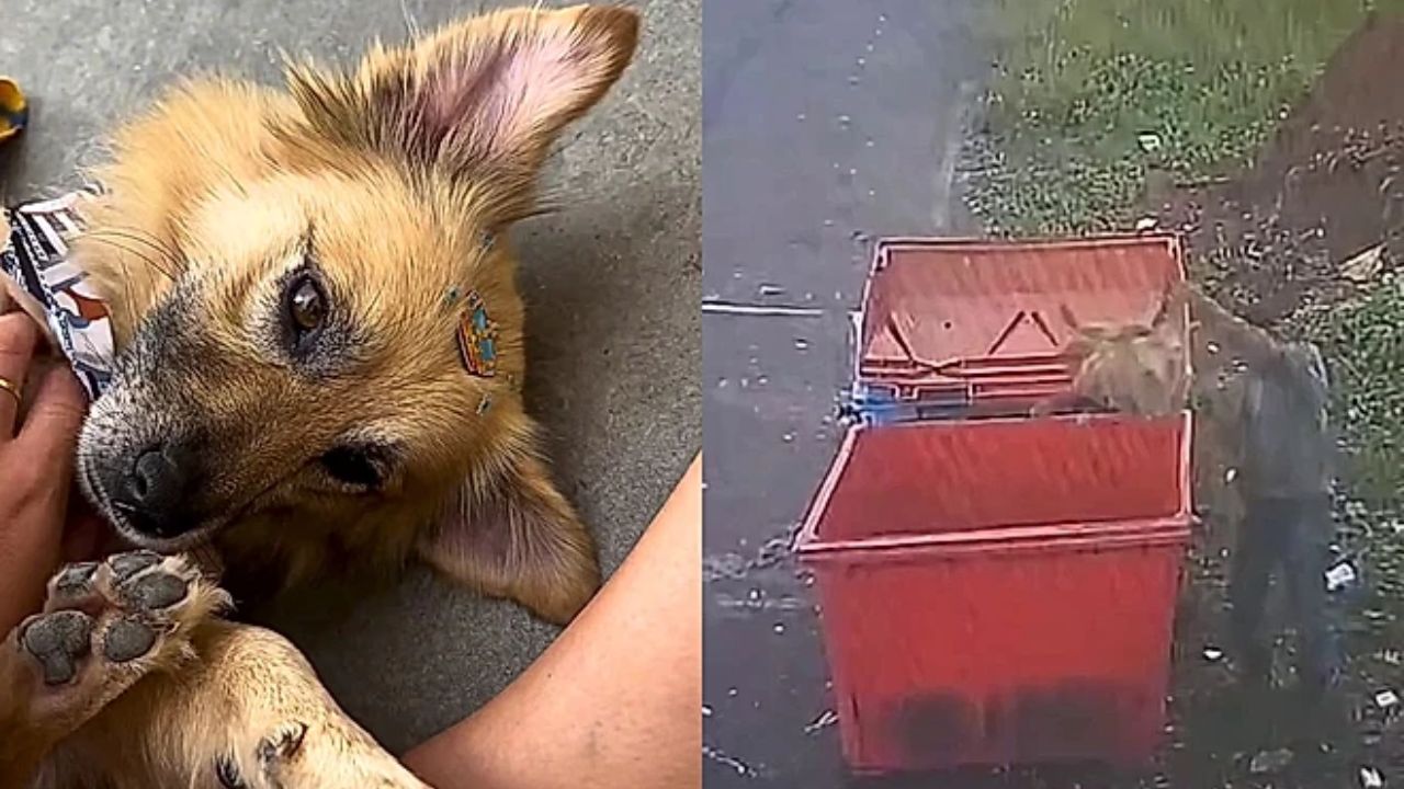 Moradores se unem para salvar cão abandonado em lixeira e doçura do animal surpreende