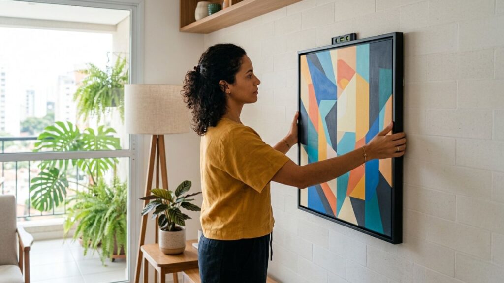 Posicionar a luz de forma estratégica evita reflexos indesejados e sombras que podem distorcer a percepção da obra no cotidiano. O investimento em iluminação valoriza o acervo pessoal e transforma a parede em uma galeria privada.