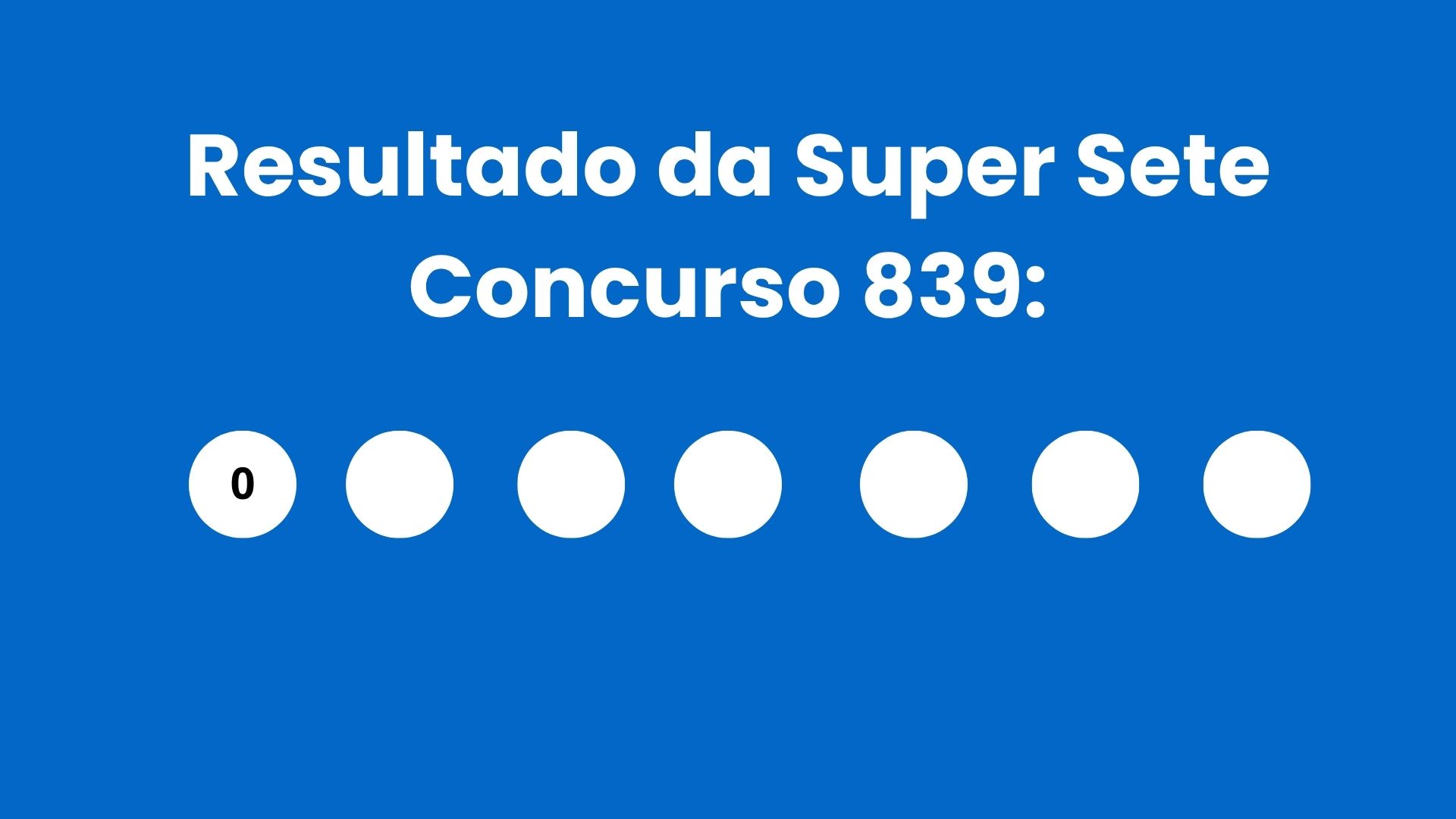 O sorteio da Super Sete 839 foi realizado nesta sexta-feira (24/04). O prêmio principal estava estimado em R$ 6,7 milhões. Confira os números sorteados e os ganhadores.