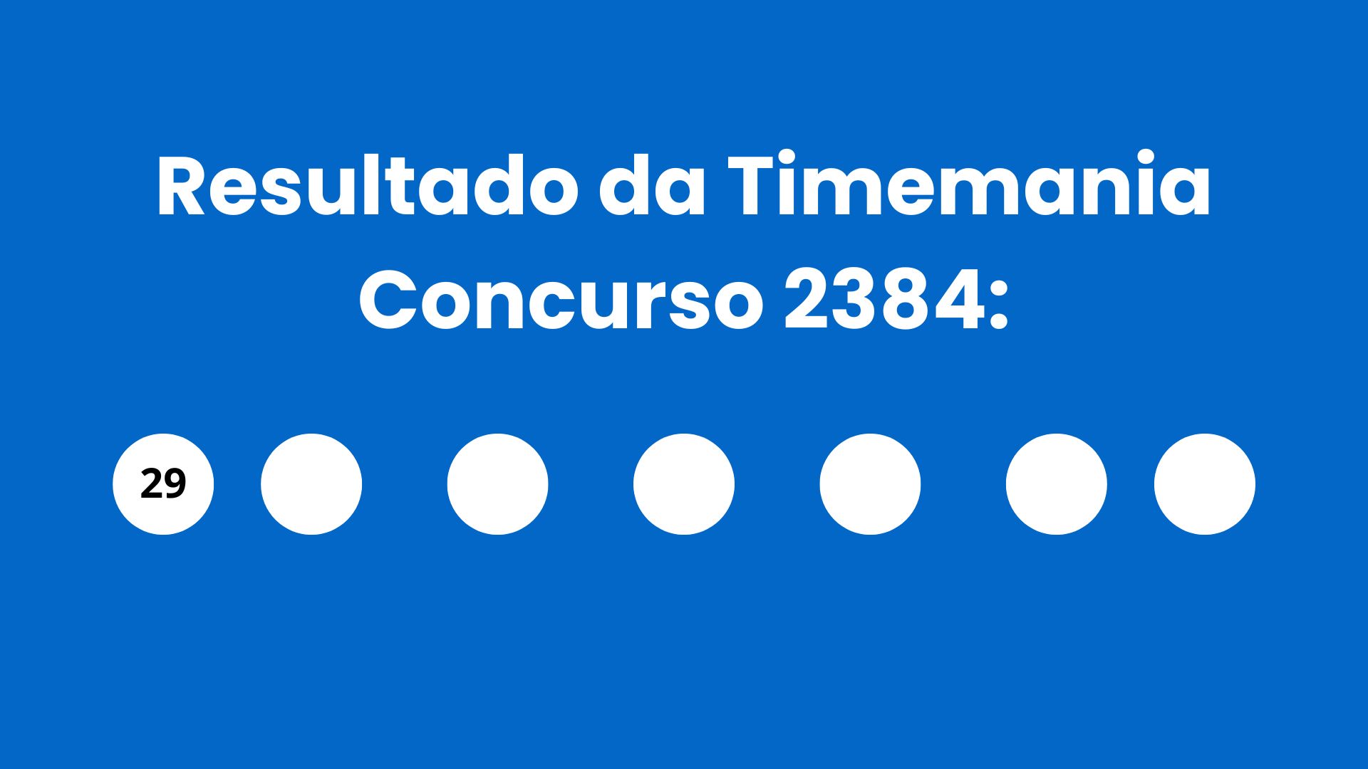 O sorteio da Timemania 2384 foi realizado neste sábado (25/04). O prêmio principal estava estimado em R$ 21,5 milhões. Confira os números sorteados e os ganhadores.