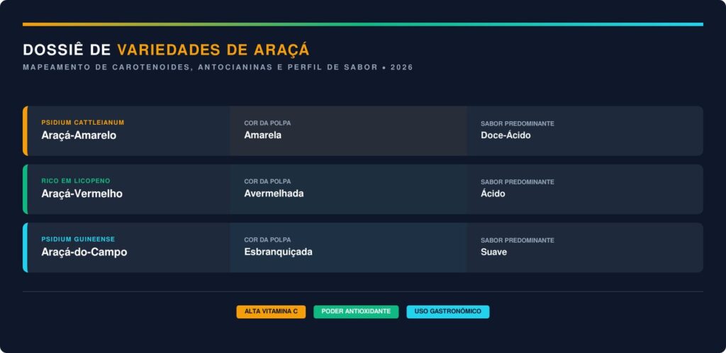 Confira os dados técnicos sobre as variedades de araçá de acordo com as especificações da EMBRAPA: