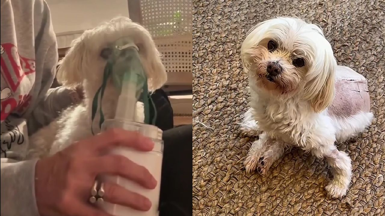 Cachorrinho emociona ao enfrentar nebulização com serenidade ao lado da tutora