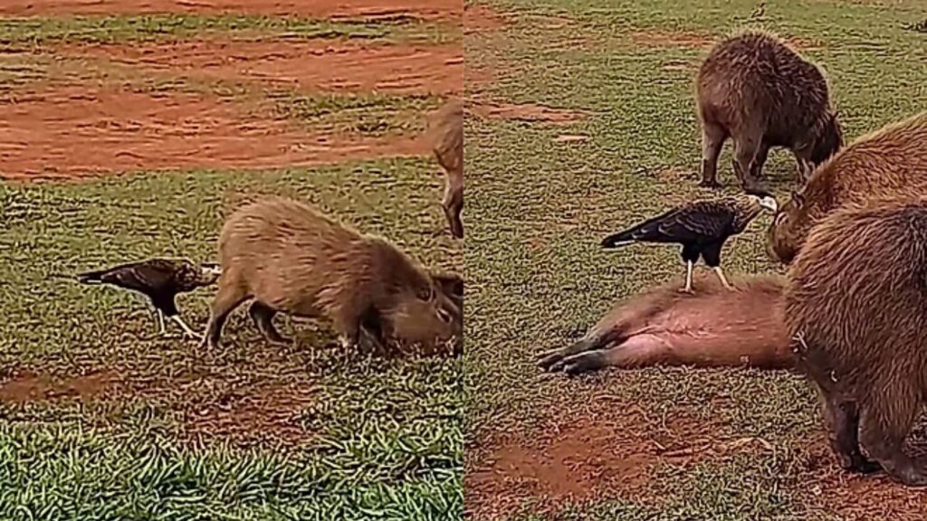 Um registro inusitado capturado na natureza revelou uma interação surpreendente entre espécies que dificilmente seriam vistas juntas em momentos de relaxamento. As imagens mostram o instante em que capivaras selvagens demonstram total confiança diante de um carcará, expondo suas barrigas em um comportamento que remete a uma sessão de massagem.