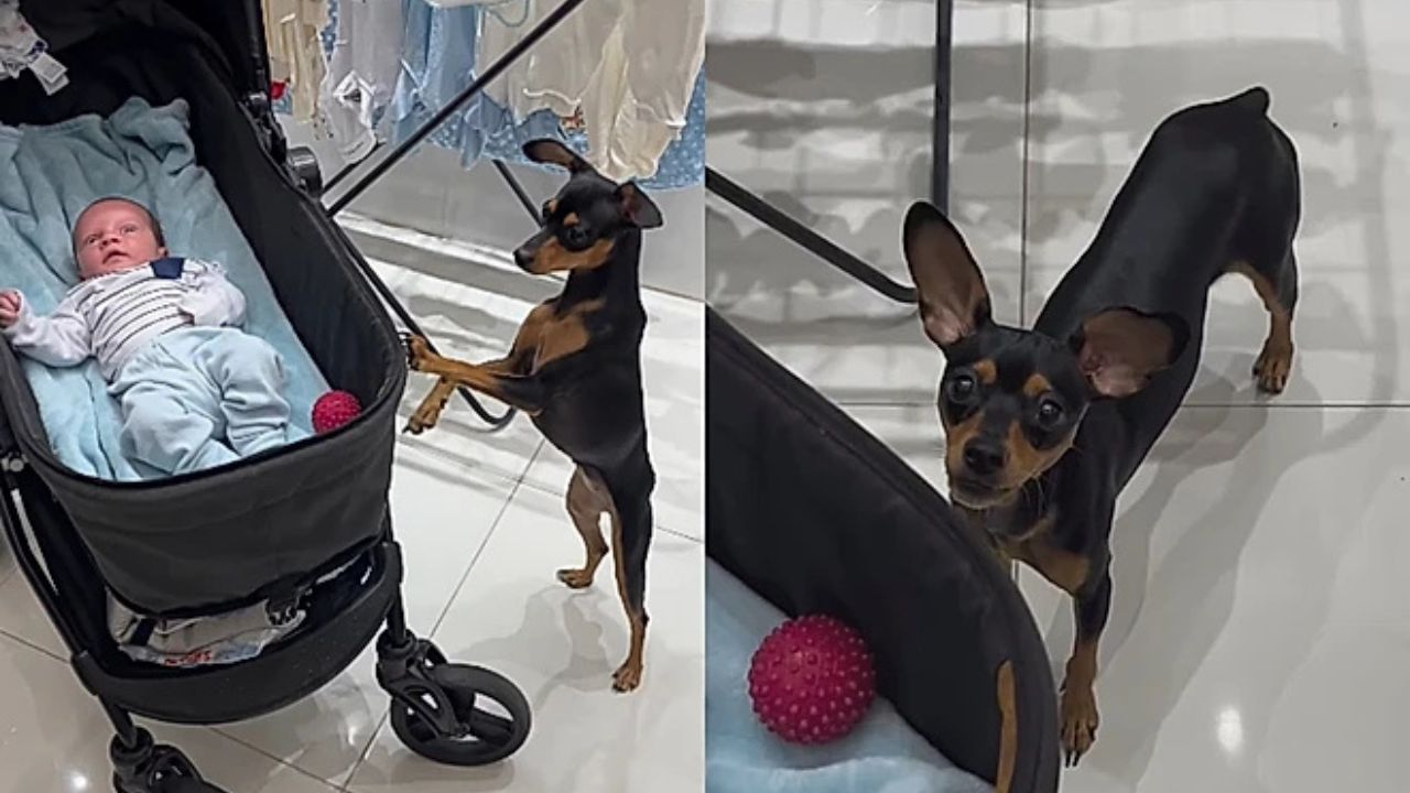 O episódio chama atenção não apenas pela fofura, mas também pelo comportamento insistente e social do animal, que tenta incluir o bebê em uma brincadeira simples: jogar bolinha.